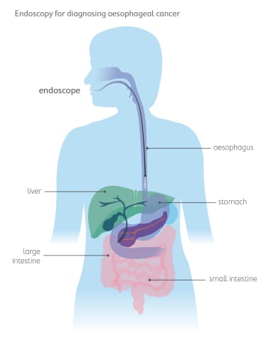 An endoscopy (also called gastroscopy or oesophagoscopy) is the main test used to diagnose oesophageal cancer.