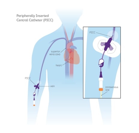 If you’re having IV chemotherapy through a drip, your doctor may recommend a device to make treatment easier. This might be: